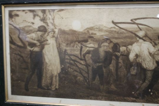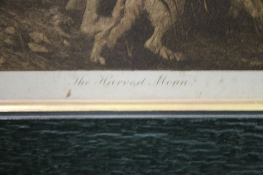 A FRAMED ENGRAVING TITLED 'THE HARVEST MOON', 111 X 55 CM