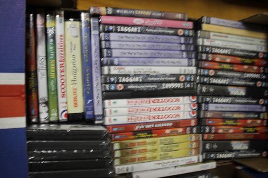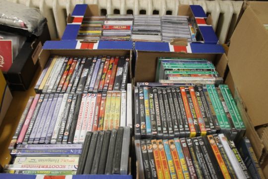 THREE TRAYS OF CDS AND DVDS, (TRAYS NOT INCLUDED)