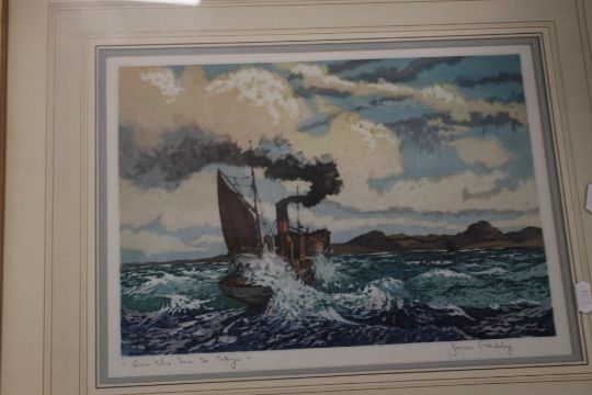 A COLLECTION OF ASSORTED PRINTS TO INCLUDE LAKESIDE SCENES, SEASCAPES, STREET SCENE ETC. (7)