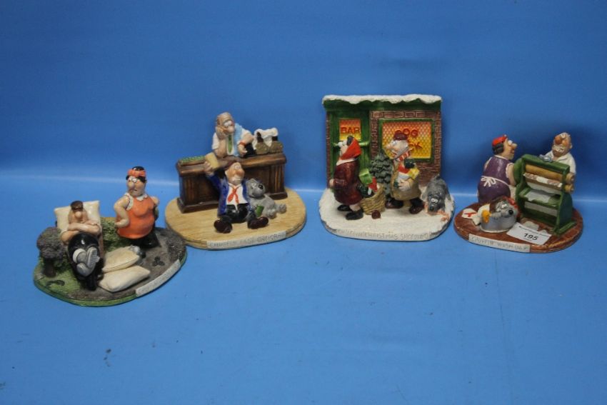 FOUR '"THE CHUFFINS'" FIGURES BY NATURECRAFT LTD. TO INCLUDE '"CHRISTMAS SHOPPING'", '"GARDENING'", '"WASH DAY'" AND '"LAST ORDERS'" (4)