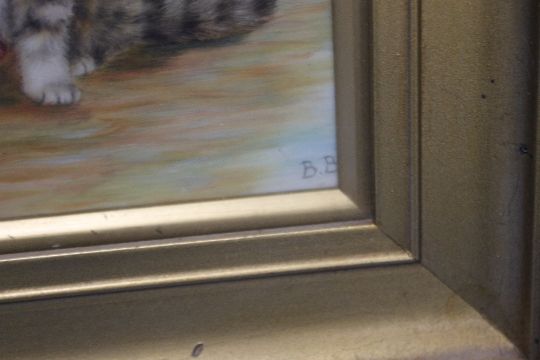 BESSIE BAMBER, OIL ON GLASS OF TWO KITTENS IN ORIGINAL GILT FRAME, 27 X 23 CM