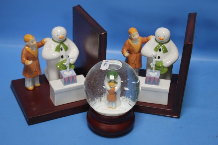 TWO COALPORT '"THE SNOWMAN'" LEFT HAND BOOKENDS TOGETHER WITH A COALPORT SNOWMAN SNOW GLOBE