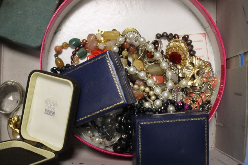 A QUANTITY OF COSTUME AND OTHER JEWELLERY TO INCLUDE BOXED LOTUS SIMULATED PEARLS ETC.