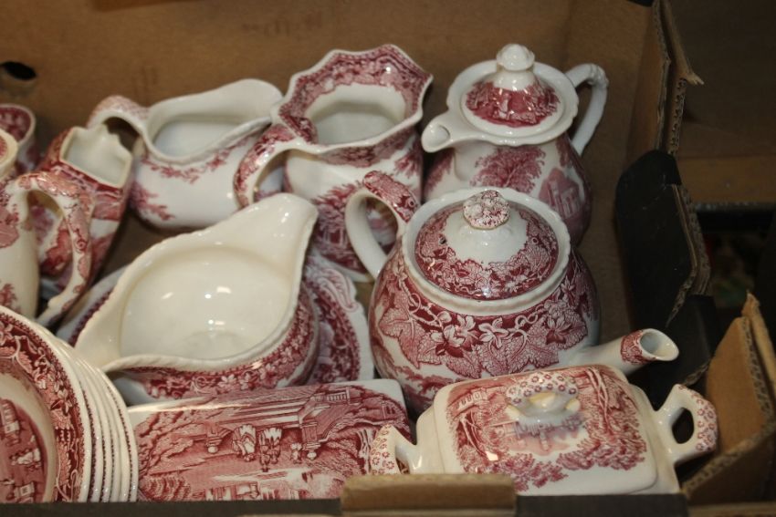 TWO TRAYS OF MASONS '"VISTA'" BLUE AND PINK CERAMICS (NOT INCLUDING TRAYS)