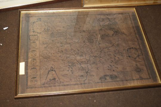 A FRAMED AND GLAZED REPRODUCTION MAP OF DUDLEY TOGETHER WITH ANOTHER FRAMED REPRODUCTION MAP AND A PRINT (3)