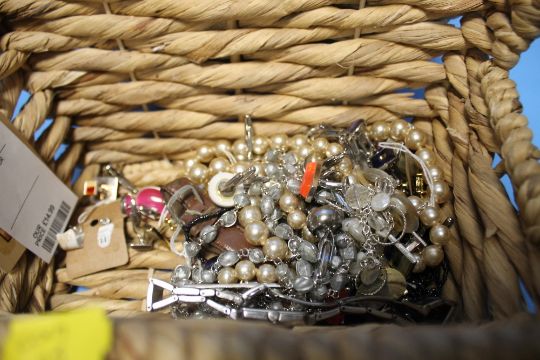 A BASKET OF JEWELLERY AND A BASKET OF CUTLERY