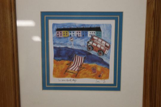 FOUR FRAMED AND GLAZED PRINTS SIGNED LOWER RIGHT INDISTINCT