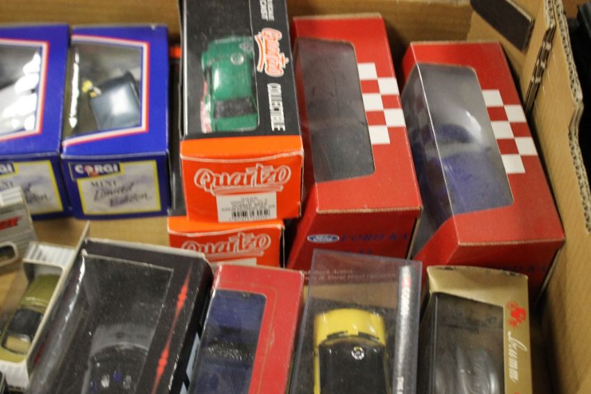 TWO TRAYS OF BOXED MODEL CARS TO INCLUDE CORGI, NEW-RAY ETC.