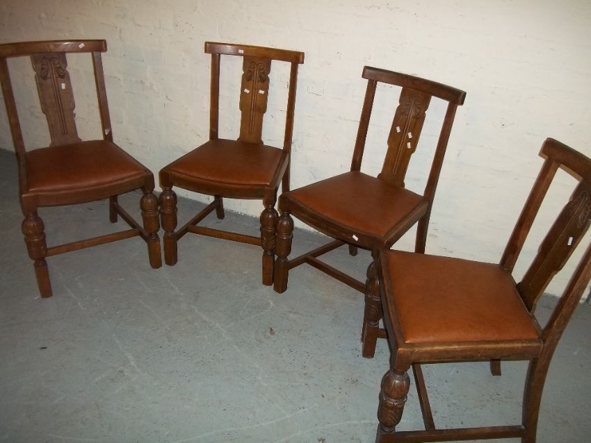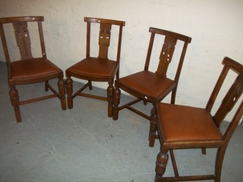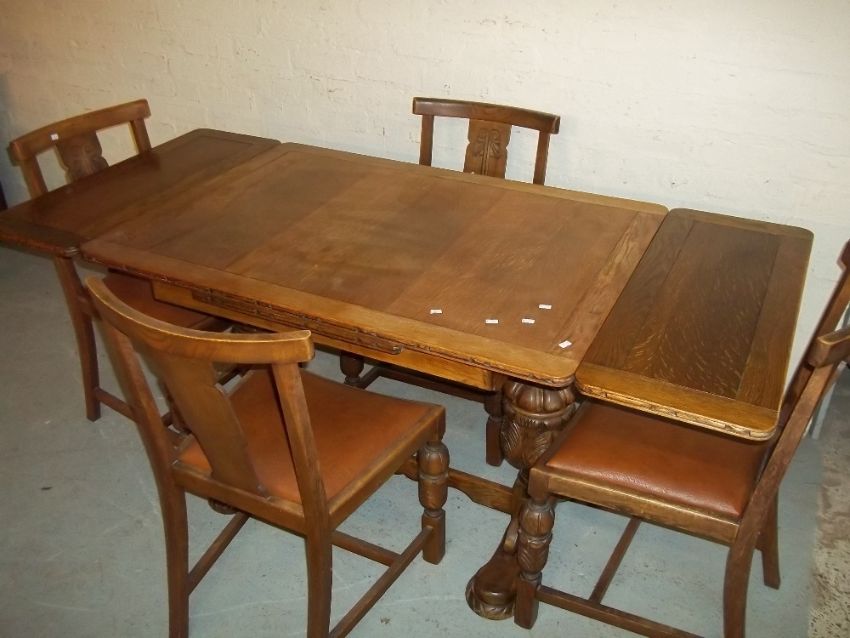 A DRAWER LEAF OAK DINING SET - MID 20TH CENTURY