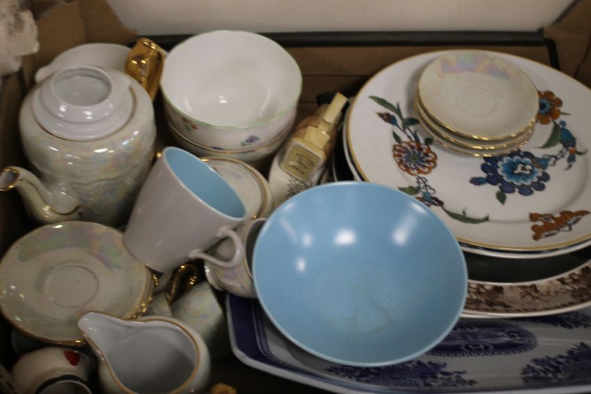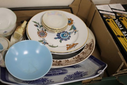 TWO TRAYS OF CERAMICS TO INCLUDE '"MIDWINTER'", '"POOLE'", ETC.