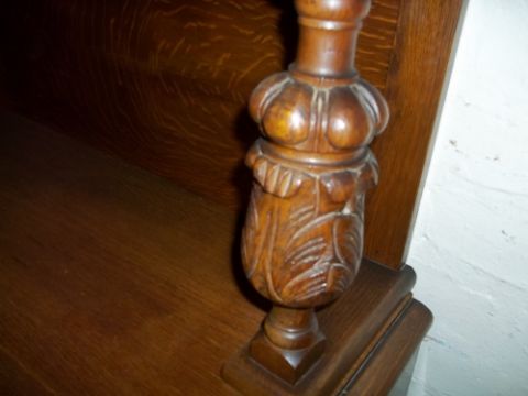 AN OAK MID CENTURY SIDEBOARD WITH CARVED DETAIL