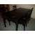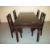 A LARGE EBONISED TYPE BLACK WOOD / CAST IRON DINING SET WITH FOUR CHAIRS, SOME HEAT MARKS TO TOP