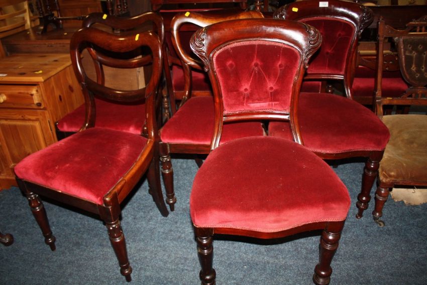 A MIXED SET OF FIVE ANTIQUE MAHOGANY DINING CHAIRS (2 + 3)