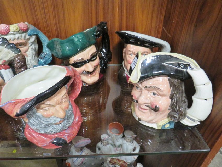 FOUR ROYAL DOULTON CHARACTER JUGS COMPRISING OFF CAPTAIN HENRY MORGAN' DICK TURPIN' HENRY VIII & FALSTAFF