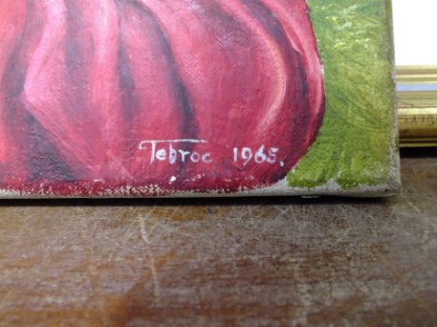 AN UNFRAMED OIL ON CANVAS DEPICTING A YOUNG MAIDEN WITH A DOVE ON HER SHOULDER SIGNED TEBROC 1965