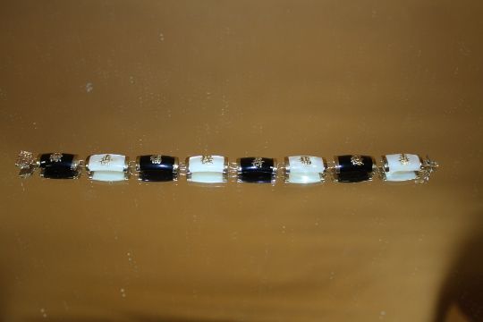 AN ORIENTAL 9CT GOLD MOTHER OF PEARL & BLACK ONYX STYLE BRACELET STAMPED 375