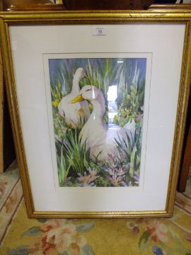 TREVOR WAUGH - A FRAMED AND GLAZED WATERCOLOUR ENTITLED , EASTER DUCKS, SIGNED LOWER LEFT AND ENTITLED VERSO OVERALL SIZE INCLUDING FRAME - 74.5CM X 59CM APPROX