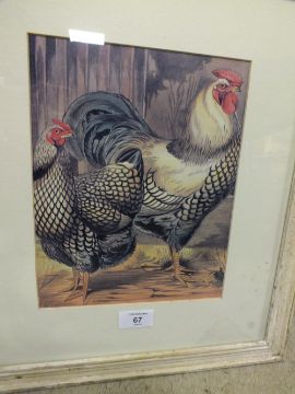 A PAIR OF FRAMED AND GLAZED FARMHOUSE STYLE PRINTS OF CHICKENS