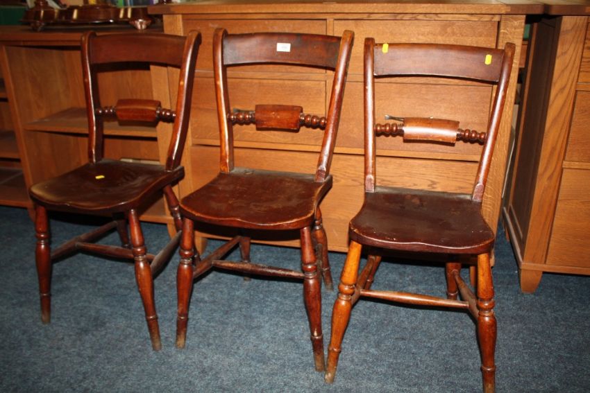 A SET OF THREE TRADITIONAL KITCHEN CHAIRS (3)