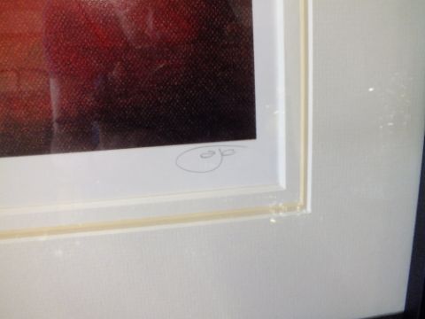 A.J. CALLAN - A FRAMED AND GLAZED MODERN NOVELTY SIGNED LIMITED EDITION PRINT ENTITLED ,CAUGHT IN THE ACT, 68/195 OVERALL SIZE INCLUDING FRAME -71CM X 64CM APPROX