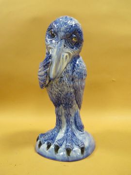 A KEVIN FRANCIS BLUE FLAMBE ,WHISPERER, GROTESQUE BIRD FIGURE