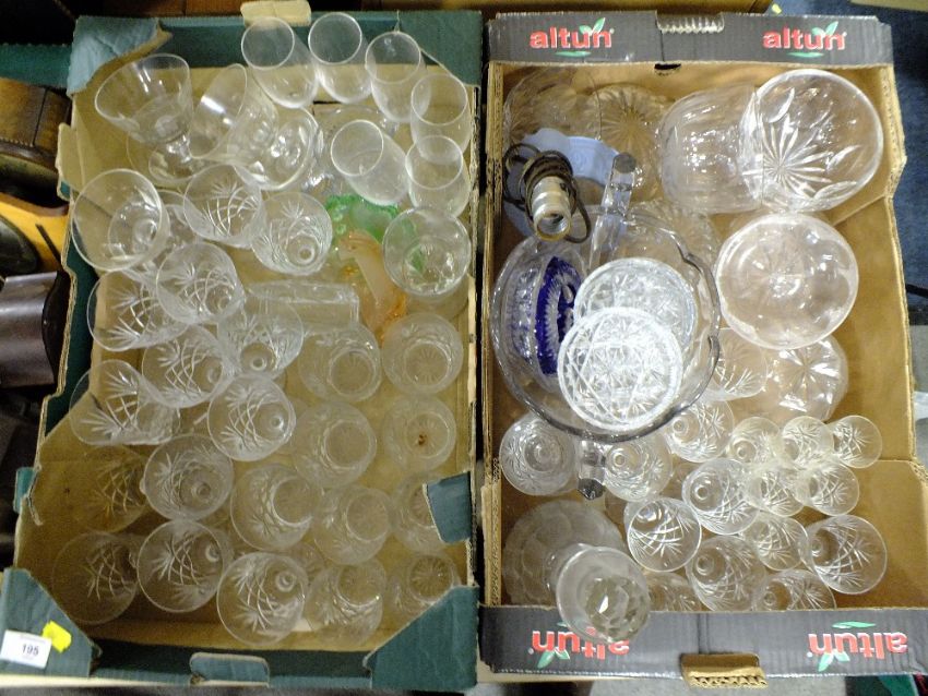 TWO BOXES OF MODERN AND VINTAGE GLASSWARE TO INC EDINBURGH CRYSTAL DRINKING GLASSES ETC