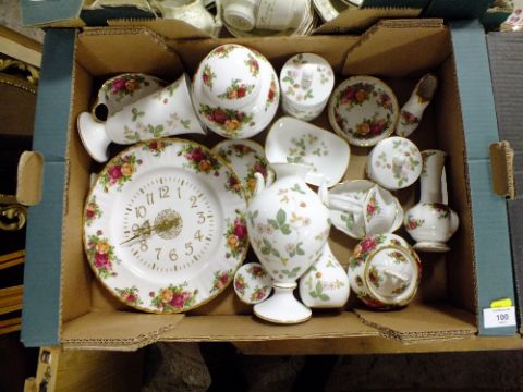 A BOX OF ROYAL ALBERT OLD COUNTRY ROSES AND WEDGWOOD WILD STRAWBERRY