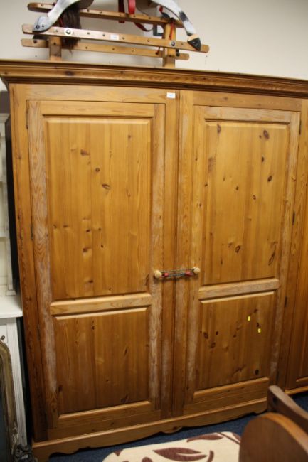 A MODERN DOUBLE HONEY PINE WARDROBE H-196 CM W-163 CM