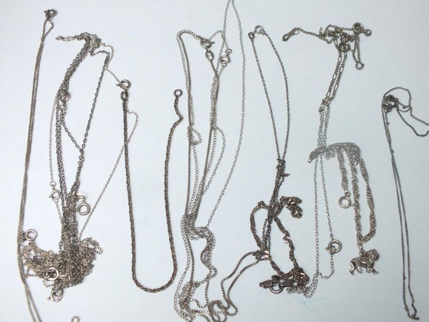 SELECTION OF 12 SILVER CHAINS TOGETHER WITH SIX SILVER BRACELETS