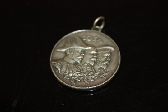 A WHITE METAL 1914 MEDAL MARKED SWISS TO EDGE AND EMBOSSED WITH THE WORDS 'AU VAILLANT ROIDES BELGES ET A SON PEUPLE'