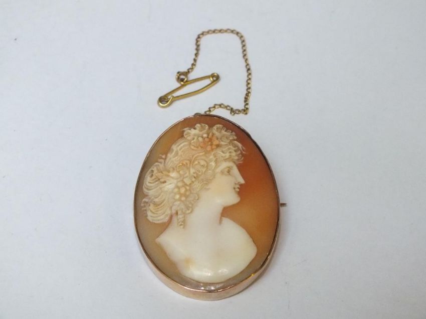 A LARGE VICTORIAN 9CT GOLD MOUNTED CAMEO BROOCH