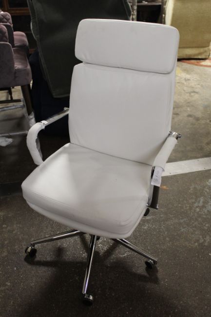 A MODERN WHITE SWIVEL OFFICE CHAIR