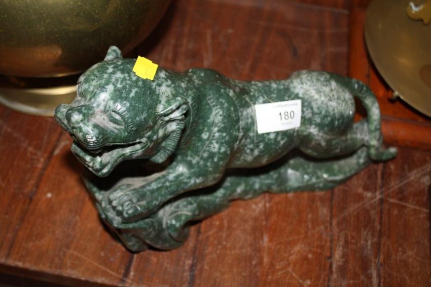 A CARVED HARD STONE FIGURE OF A TIGER