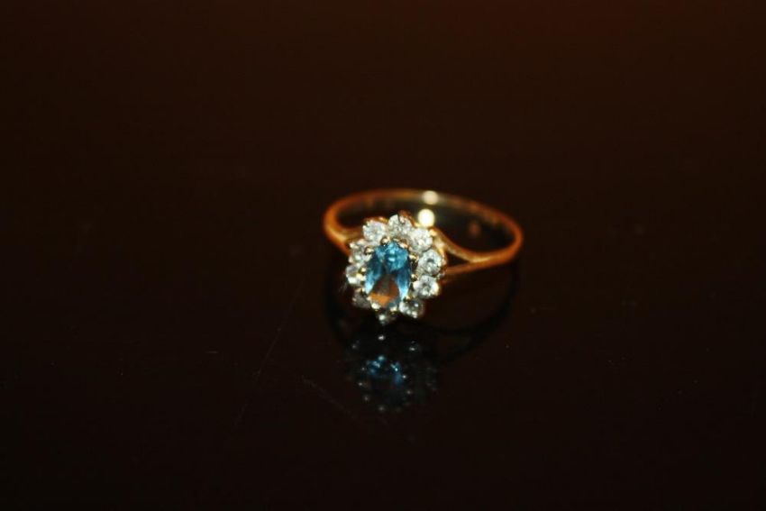 A LADIES 9 CARAT GOLD FLORAL SET DRESS RING - SIZE N - WEIGHT 1.7 GRAMS APPROX