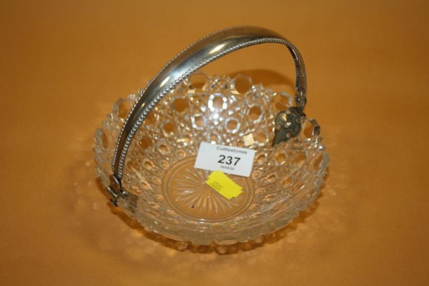 AN ANTIQUE CUT GLASS BOWL WITH DUTCH SILVER MOUNTS
