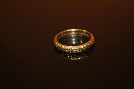 A LADIES YELLOW METAL BAND STAMPED 375 - SIZE N - WEIGHT 1 GRAM APPROX