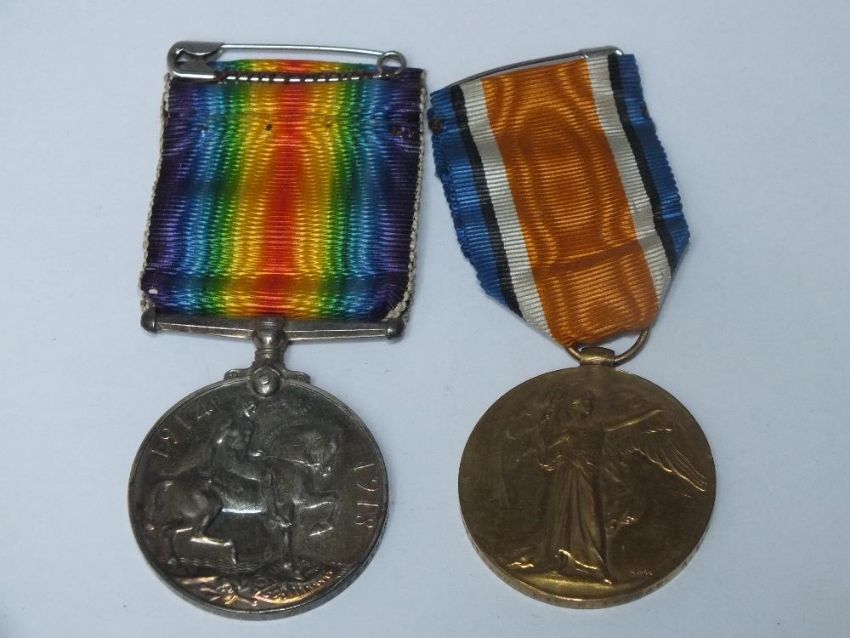 A PAIR OF WWI MEDALS TO E.THOMAS A.S.C WITH BOXES
