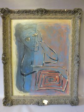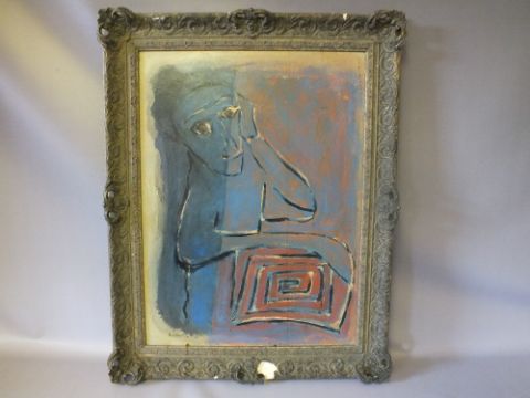 BEN SHA?? (XX). Modernist figure study, signed lower left, oil on board, framed, 61 x 46 cm