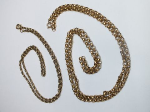 A 9K BELCHER CHAIN, approx weight 30.4g, together with a small hallmarked 9 carat gold rope twist chain, approx weight 7g (2)