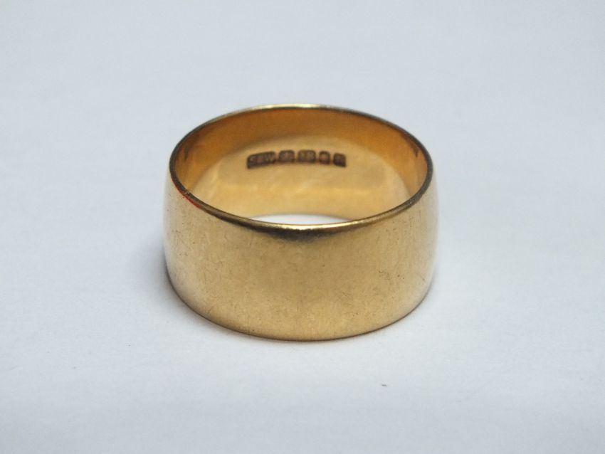 A HALLMARKED 18CT GOLD WEDDING BAND, ring size r 1/2, approx 9.1 g