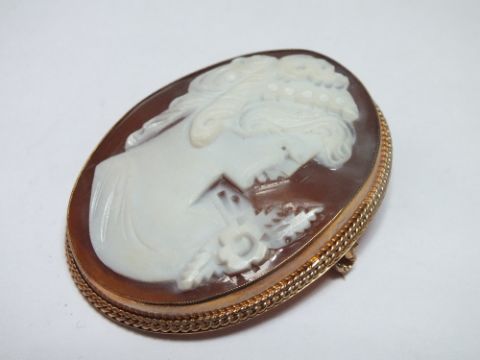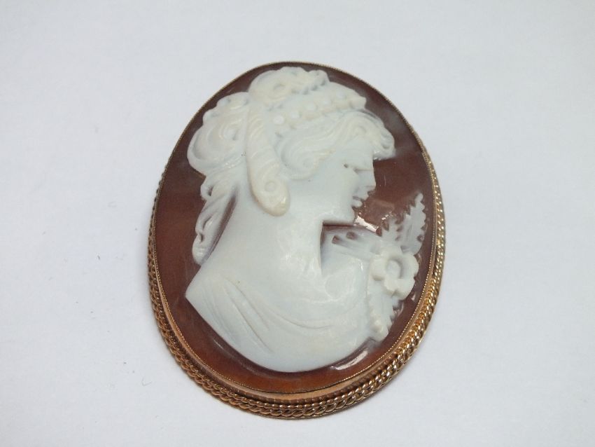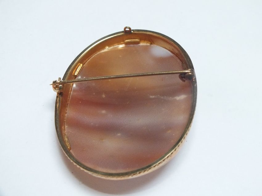 A OVAL CAMEO PORTRAIT BROOCH IN HALLMARKED 9CT GOLD DECORATIVE MOUNT, cameo H 5.2 cm, approx weight 17.7 g