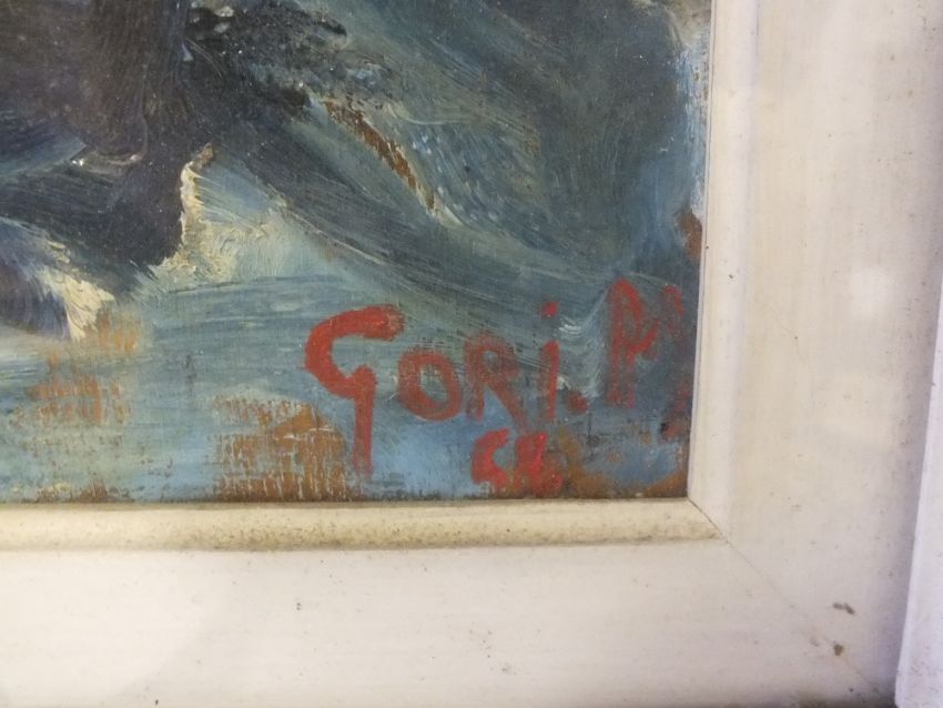 M. GORI. Impressionist study of flowers in a vase 'Wild Poppies', see verso, signed and dated 1958 lower right, oil on board, framed and glazed, 41 x 33 cm