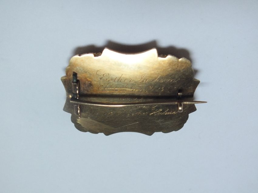 A GEORGIAN TYPE MOURNING BROOCH, with inscription to reverse dated 1838, W 3.25 cm