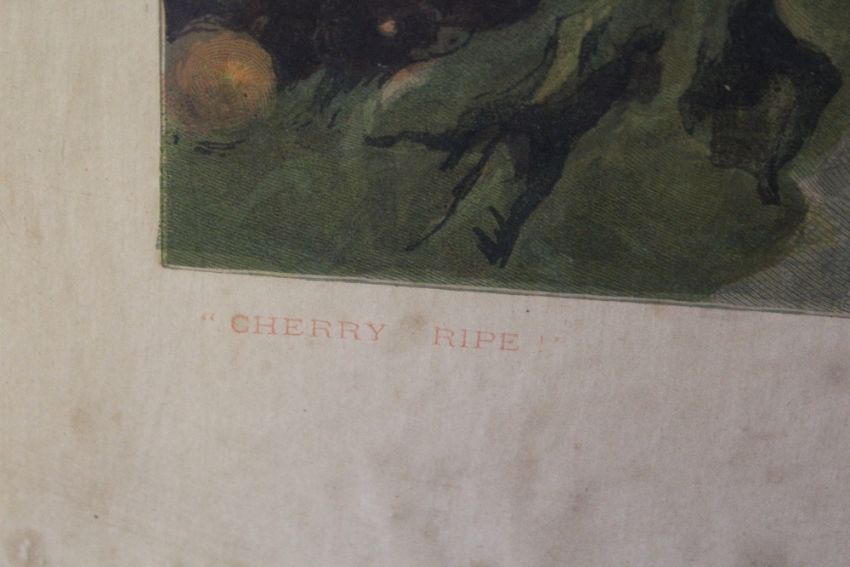 SIR JOHN EVERETT MILLAIS (1829-1896). 'Cherry Ripe', signed in pen and ink lower right, coloured lithograph on paper laid on canvas, unframed, 83 x 57 cm