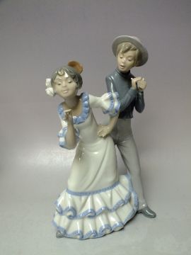 A NAO DANCERS FIGURINE 'FLAMENCO DANCERS', together with a Nao ballet dancers group figure and two cat figures (4)