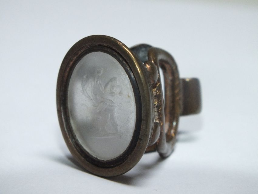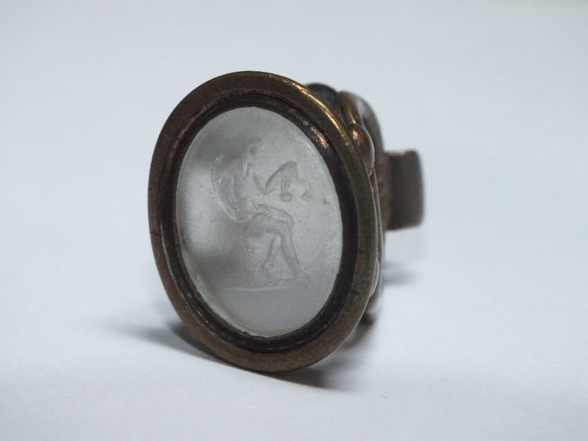A ROCK CRYSTAL TYPE INTAGLIO SET AS A FOB, W 2.5 cm