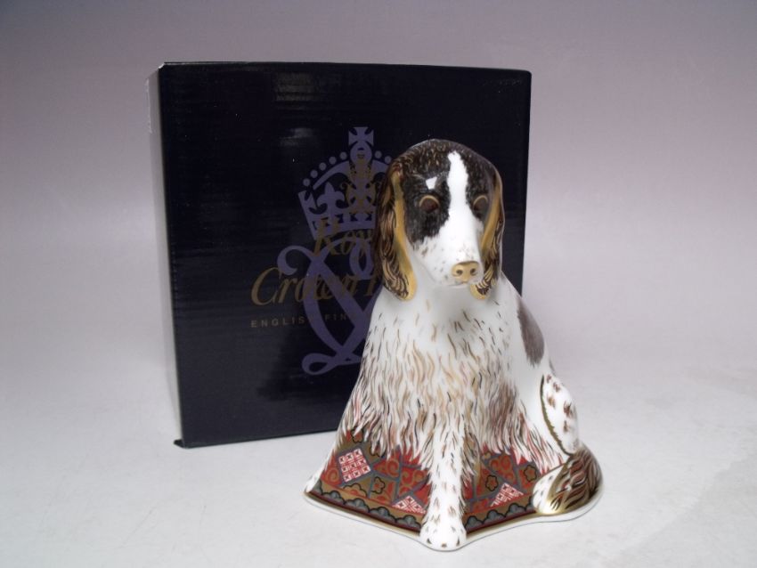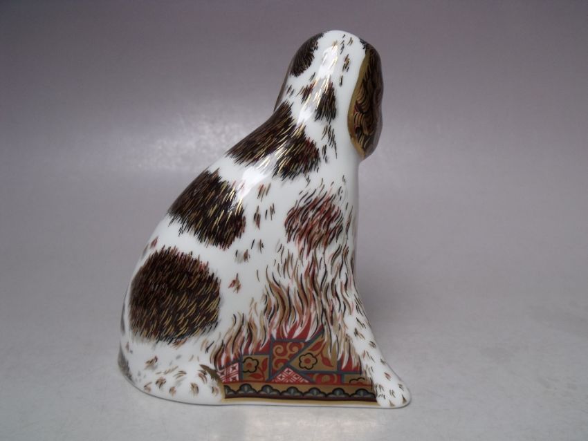 A ROYAL CROWN DERBY COLLECTORS GUILD MOLLY THE DOG PAPERWEIGHT, gold stopper, no box, H 11.5 cm
