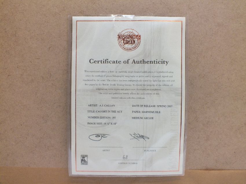 A.J. CALLAN (XX). 'Caught in the Act', limited edition giclee print, 68 of 195, certificate to reverse, 40 x 47 cm, overall 64 x 71 cm