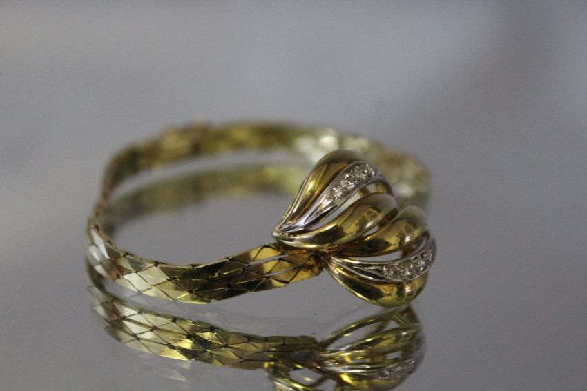 A DIAMOND SET BRACELET, stamped 585, approx weight 18.9g, L 17 cm