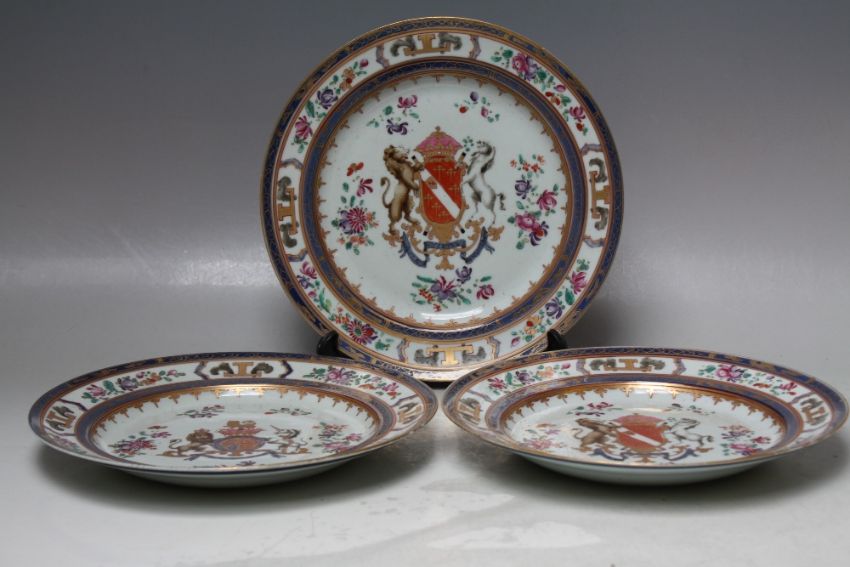 THREE SAMSON OF PARIS ARMORIAL PLATES, two painted with the coat-of-arms for the Duke's of Norfolk, Dia. 23.5 cm (3)